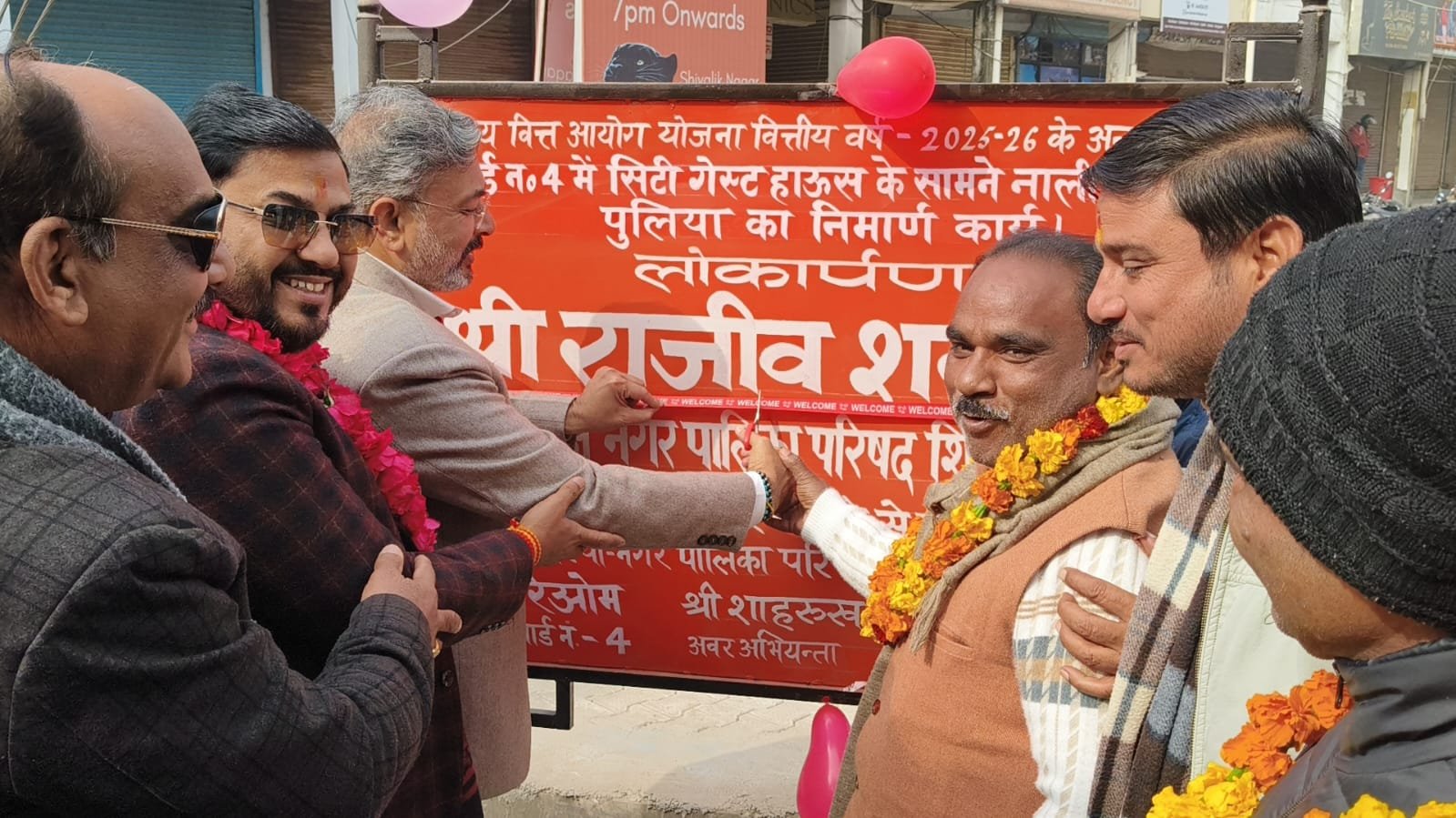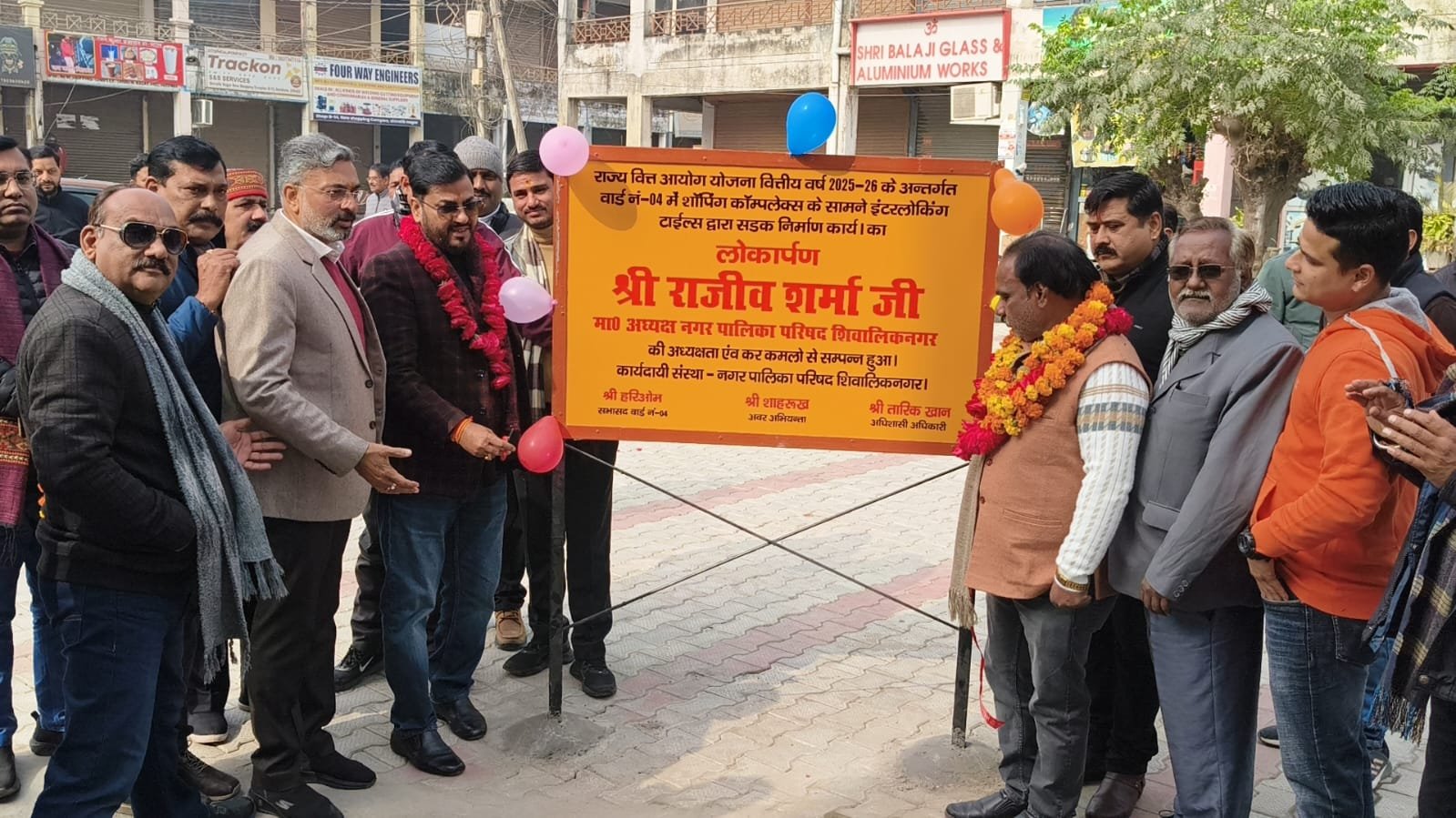 शिवालिक नगर वार्ड संख्या 4 के शॉपिंग कॉम्प्लेक्स क्षेत्र में गड्ढे वाले स्थान पर टाइल्स लगाकर समतलीकरण करने,नाली एवं पुलिया निर्माण कार्य का लोकार्पण नगर पालिका अध्यक्ष राजीव शर्मा द्वारा विधिवत रूप से किया गया तथा इस कार्य को क्षेत्रवासियों को समर्पित किया।